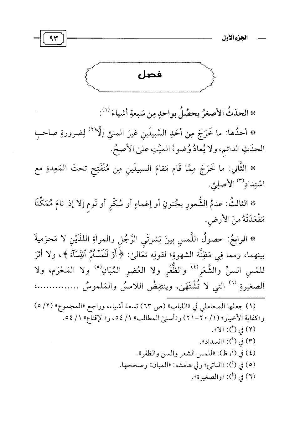* الحدَثُ الأصعْرُ يحصُلُ بواحدٍ مِن سَبعةِ أشياءَ (¬1):