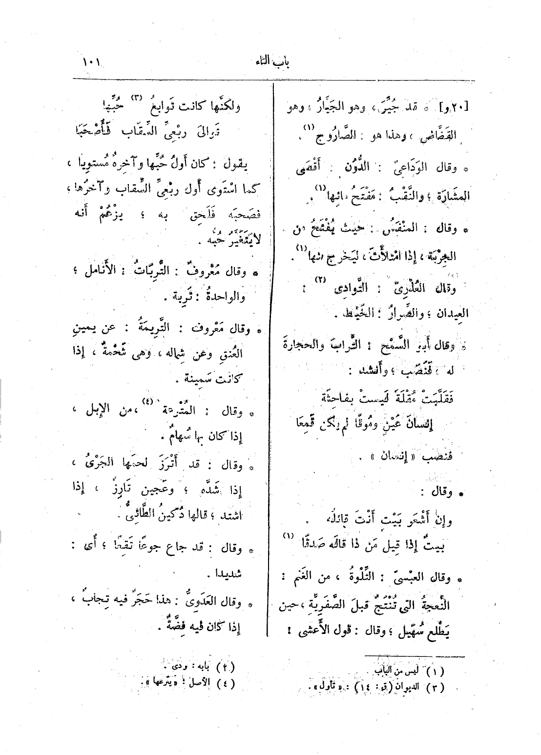 وقال العذري: التَّوادي: العيدان؛ والصِّرار: الخيط.
