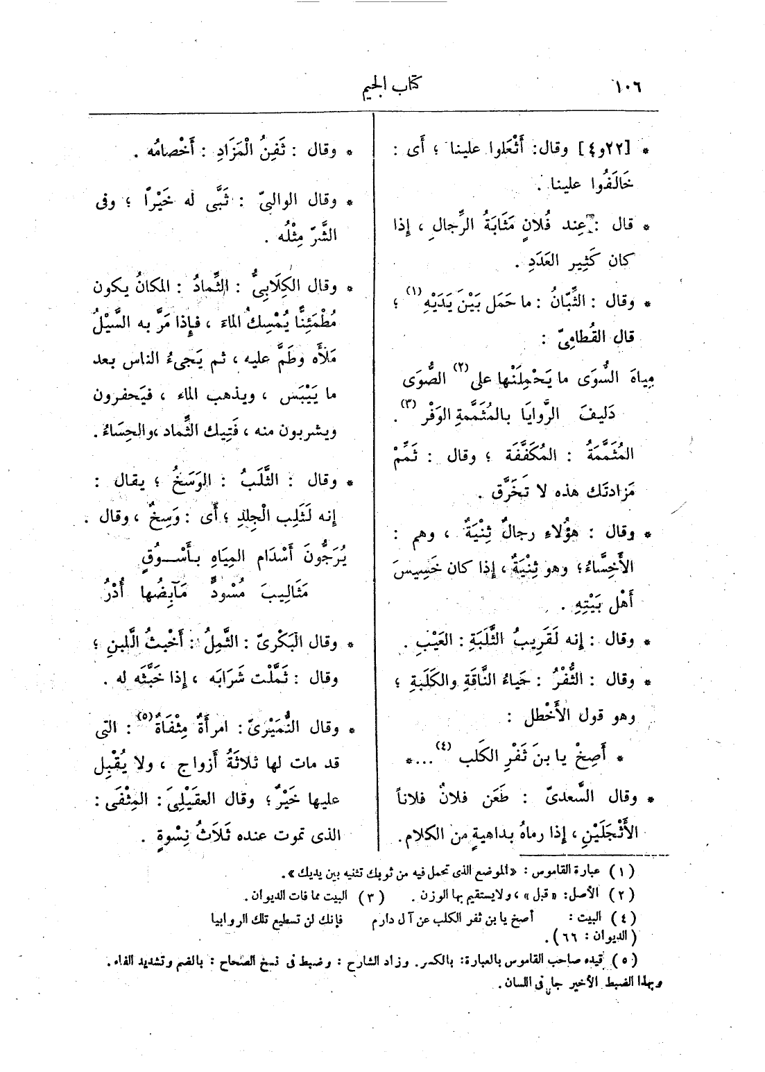 وقال السعدي: طعن فلان فلاناً الأَثْجَلَيْنِ، إذا رماه بداهيةٍ من الكلام.