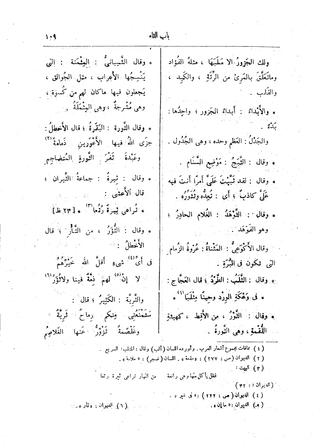 وقال: الثُّؤَرُ، من الثأر؛ قال الأخطل: