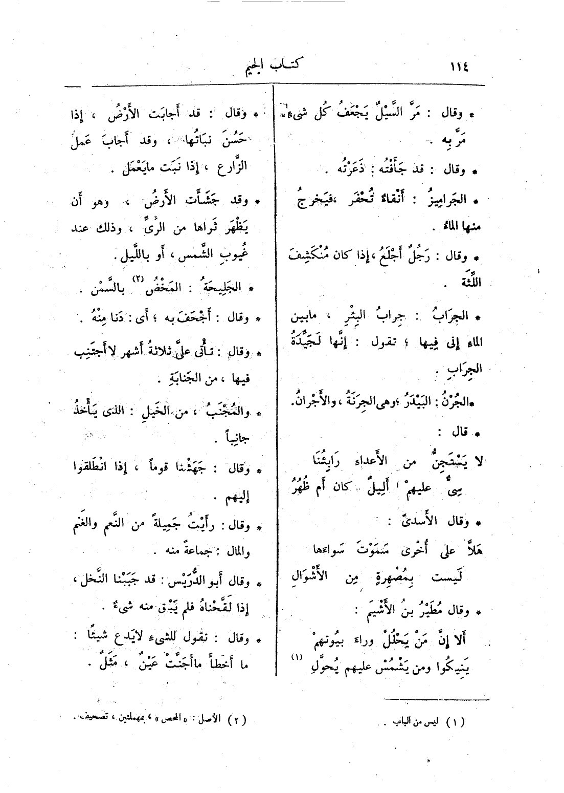 وقال: قد أجابت الأرض، إذا حسن نباتها، وقد أجاب عمل الزارع، إذا نبت ما يعمل.