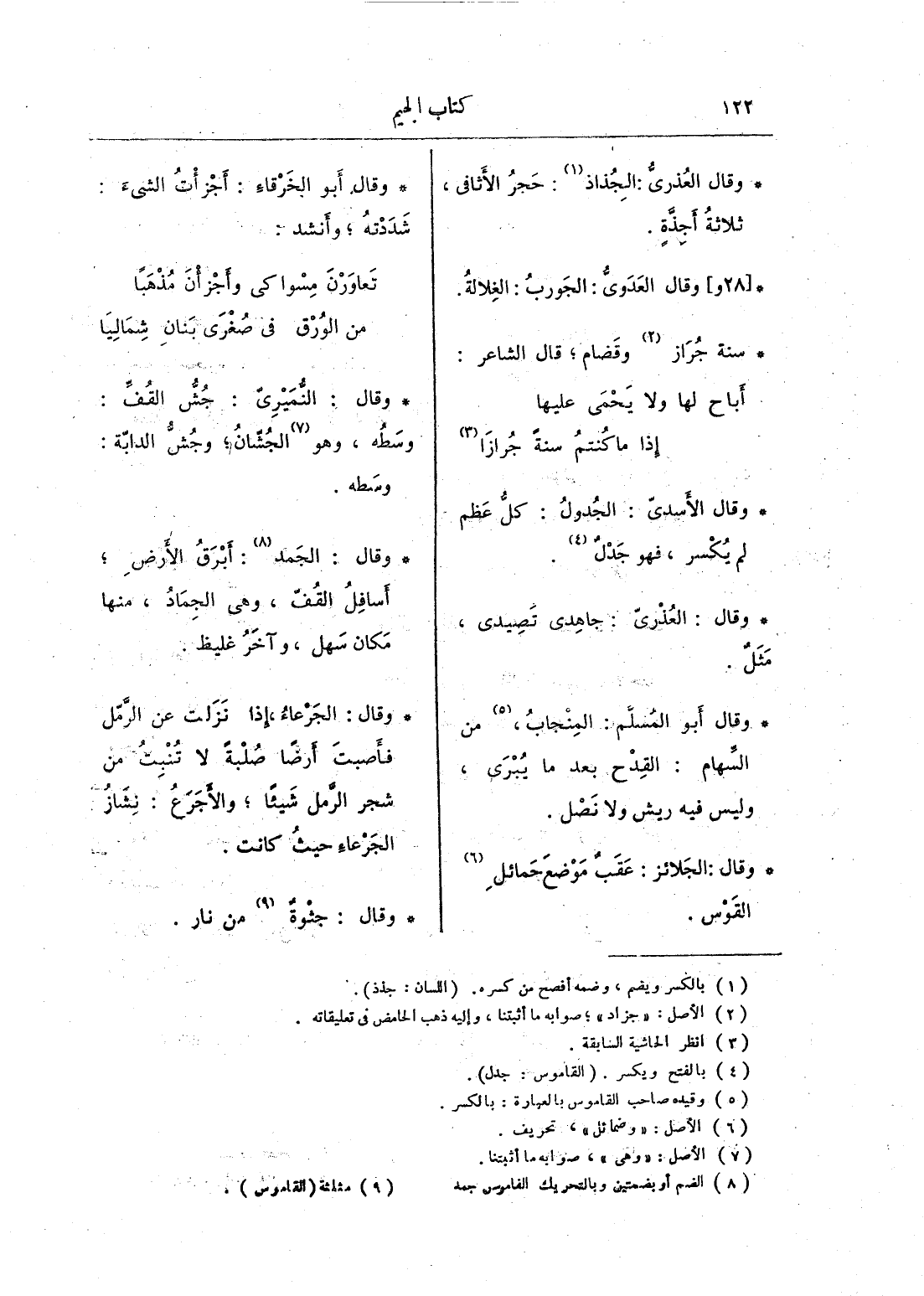 وقال: النميري: جُشُّ القُفِّ: وسطه، وهو الجُشّانُ