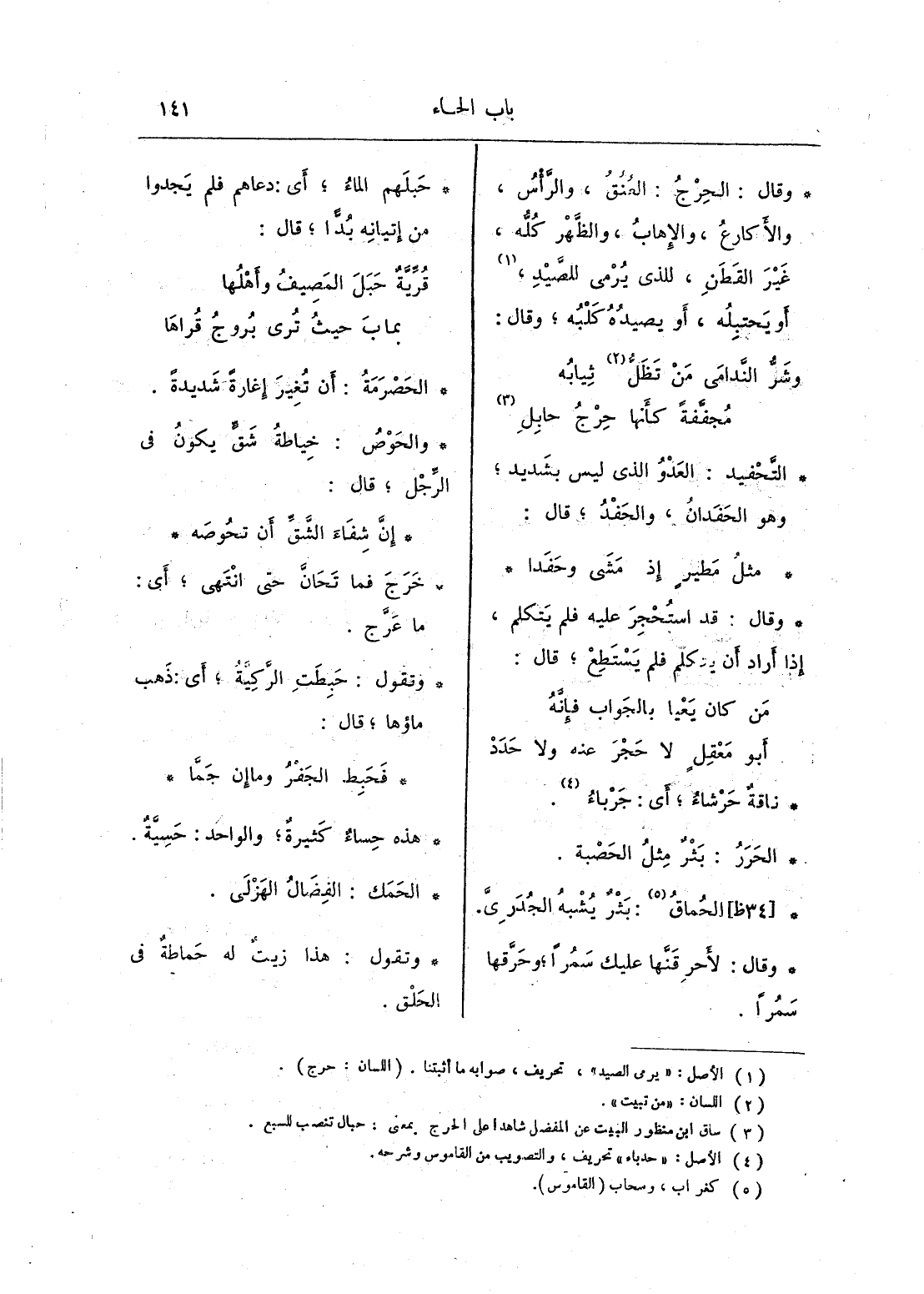 وقال: الحرج: العنق، والرأس، والكارع، والإهاب، والظهر كله، غير القطن، للذي يرمي للصيد، أو يحتبله، أو يصيده كلبه؛ وقال: