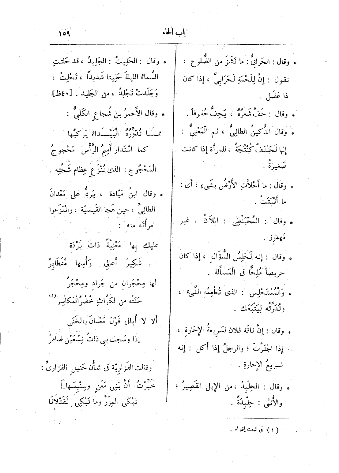 وقال: الحَلِيتُ: الجليد، وقد حلتت السماء الليلة حليتا شديداً، تَحْلِتُ، وجلدت تجلد، من الجليد.