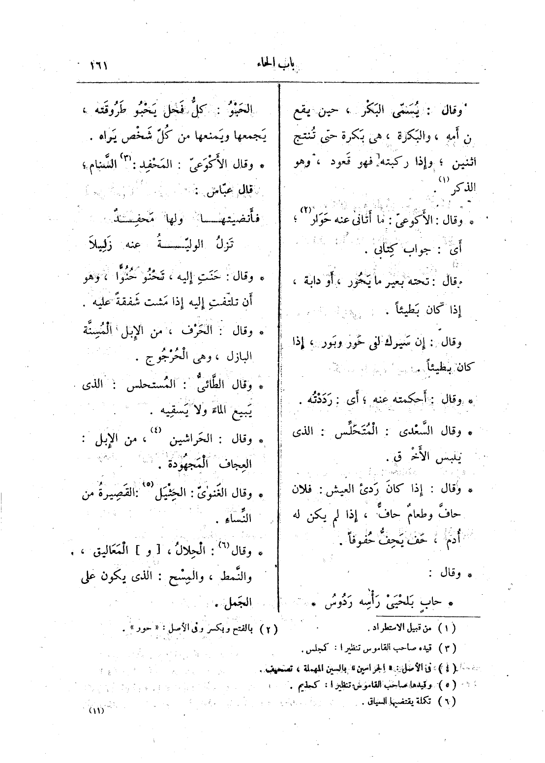 وقال: تحته بعير ما يحور، أو دابة، إذا كان بطيئاً.