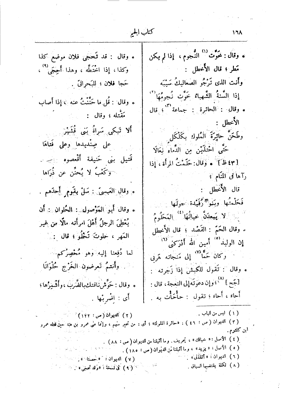 وقال: الحائرة: جماعة؛ قال الأخطل: