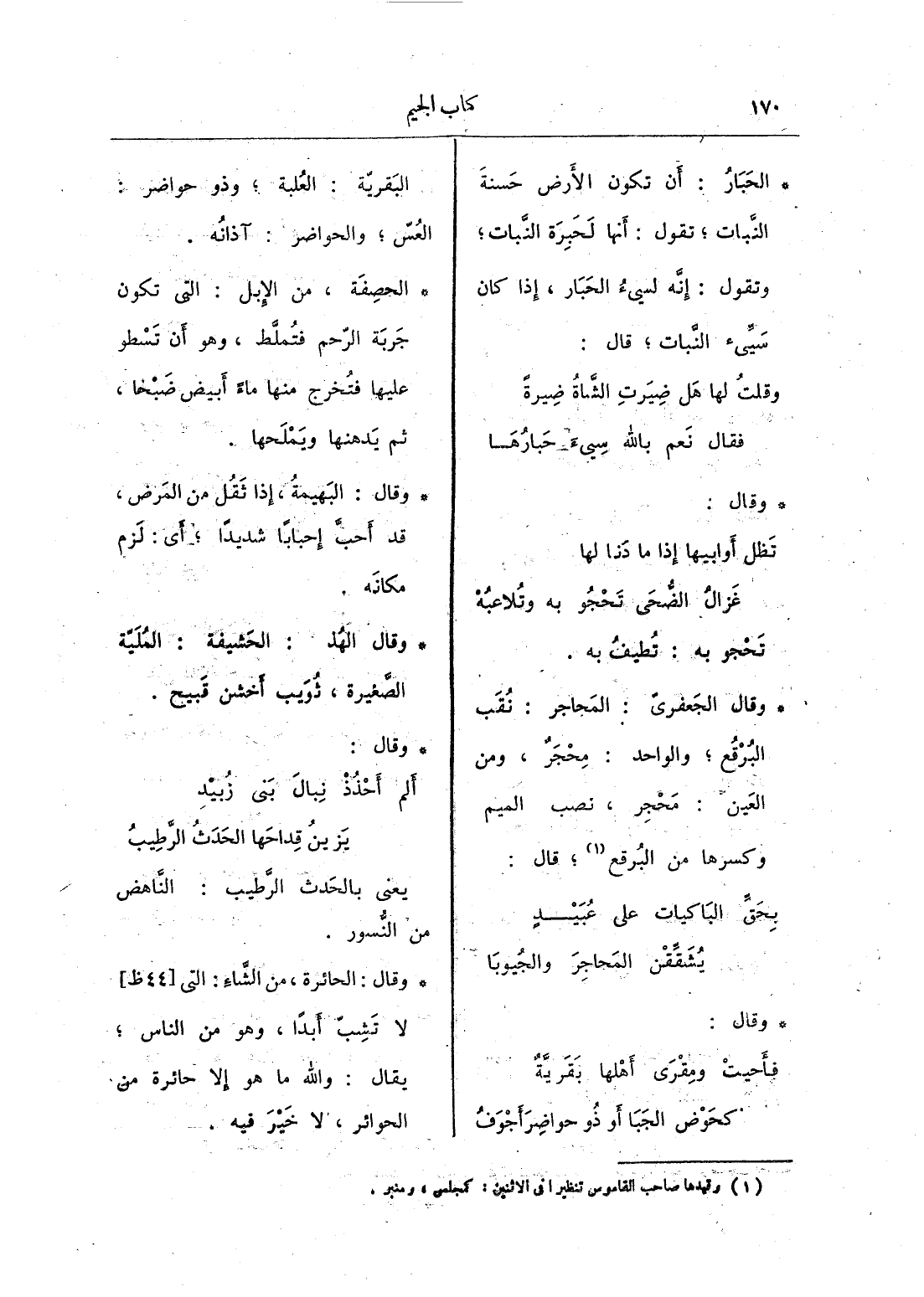 فأَحيتْ ومِقْرَي أَهْلها بَقَريَّةٌ ... كحَوْض الجَبَا أَو ذُو حواضِرَ أَجْوَفُ