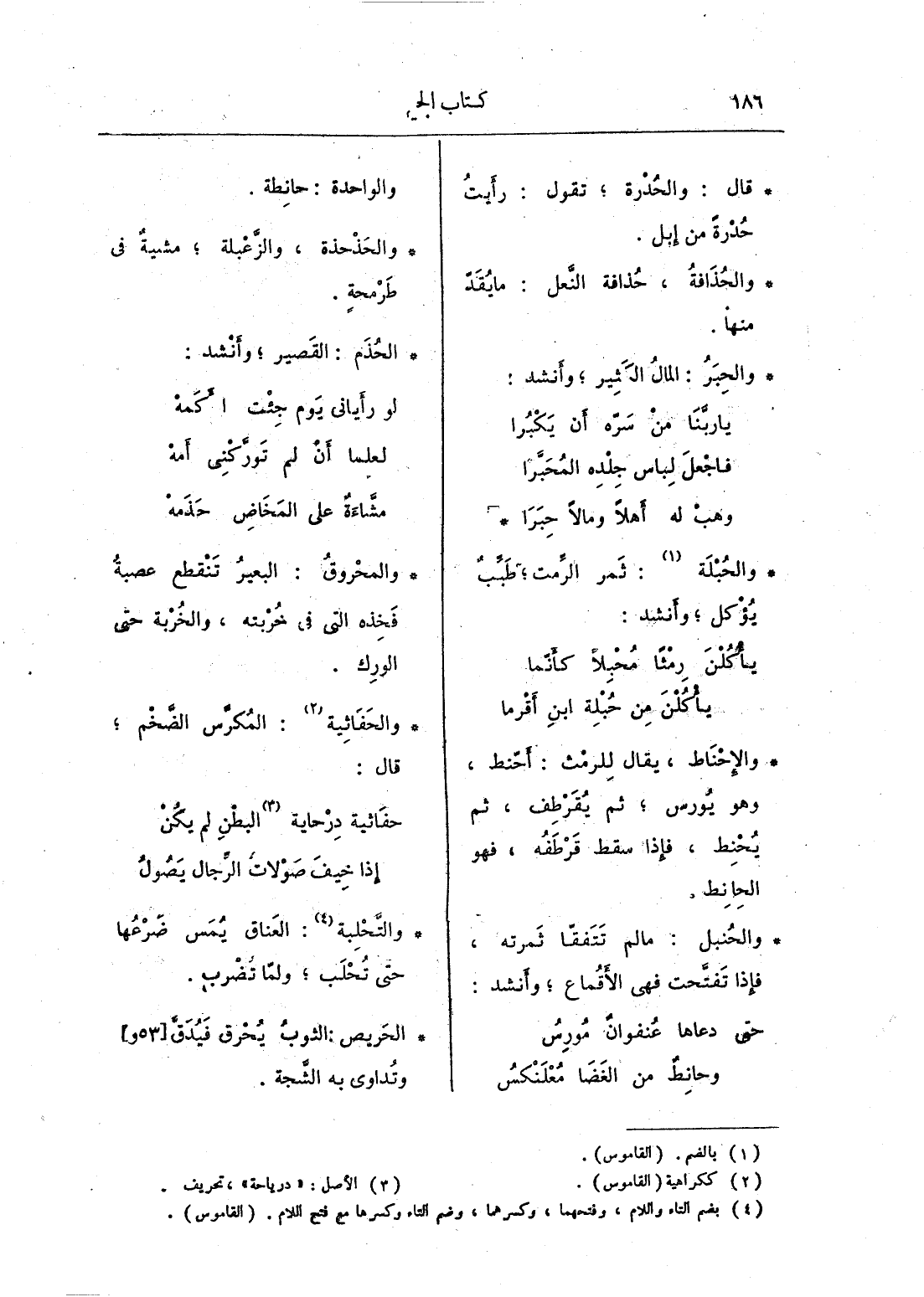 والإحناط، يقال للرمث: أحّنط، وهو يورس؛ ثم يقرطف، ثم يُحنط، فإذا سقط قرطفه، فهو الحانط.