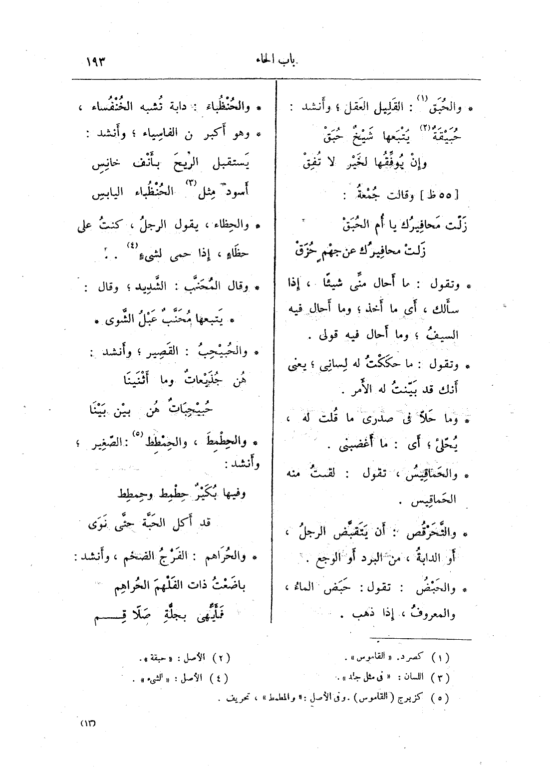 زَلّت مَحافِيرُك يا أُم الحُبَقْ ... زَلتْ محافِيرُك عن جهْمٍ حُزَقْ