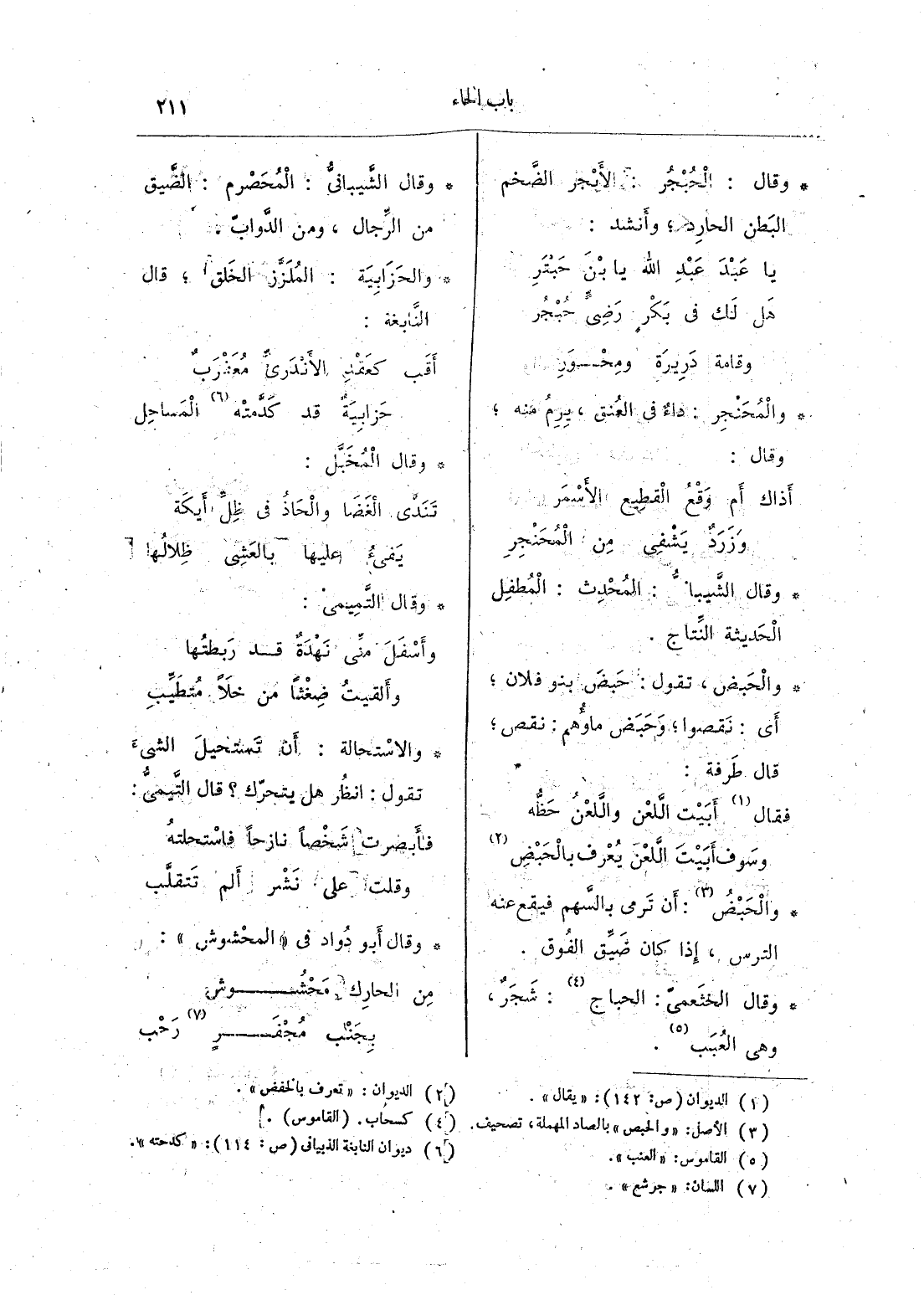 وقال الخثعمي: الحباج: شجر، وهي العبب.