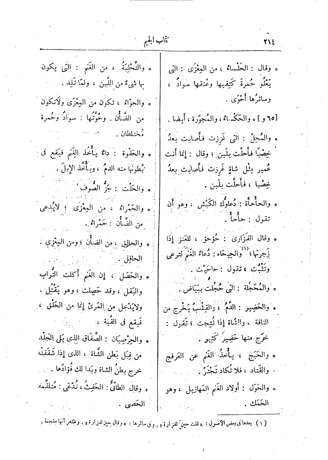 وقال الفزاري: حؤحؤ، للعنز إذا زجرتها والحيحاء: دعاء الغنم لترعى وتثبت، تقول: حاحيت.