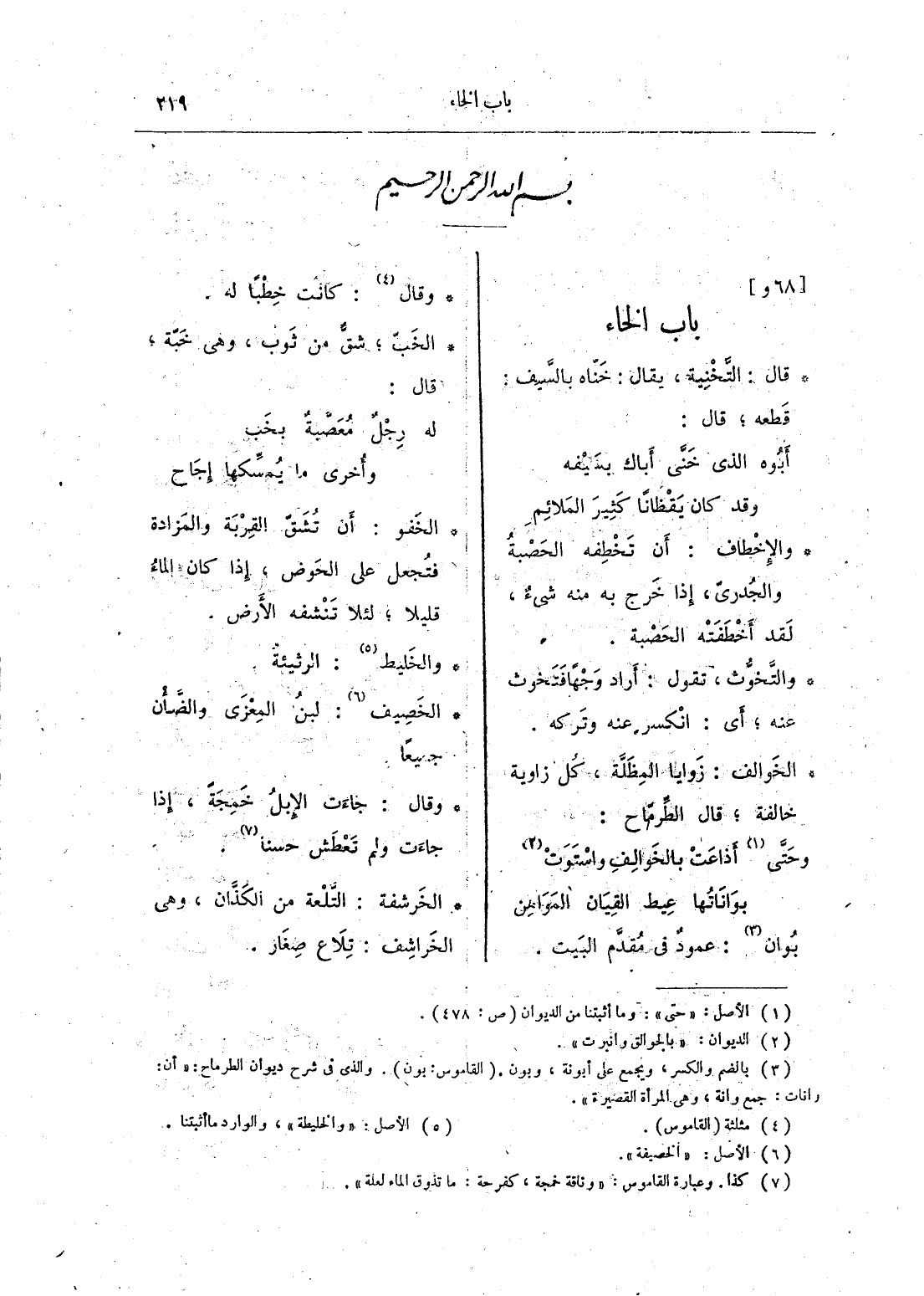الخفو: أن تشق القربة والمزادة فتُجعل على الحوض، إذا كان الماء قليلا؛ لئلا تنشفه الأرض.