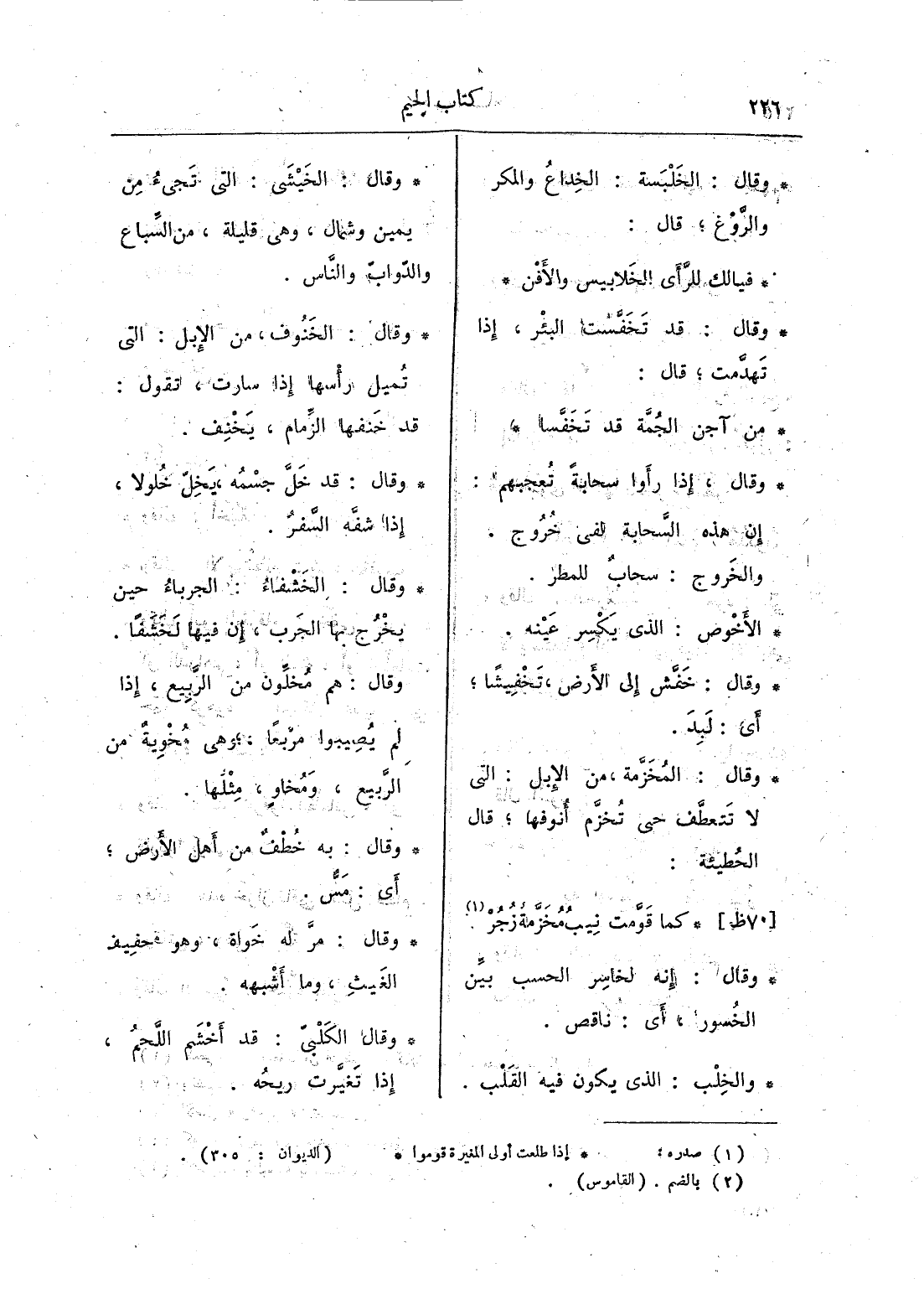 وقال: الخيشي: التي تجيء من يمين وشمال، وهي قليلة، من السِّباع والدّوابّ والناس.