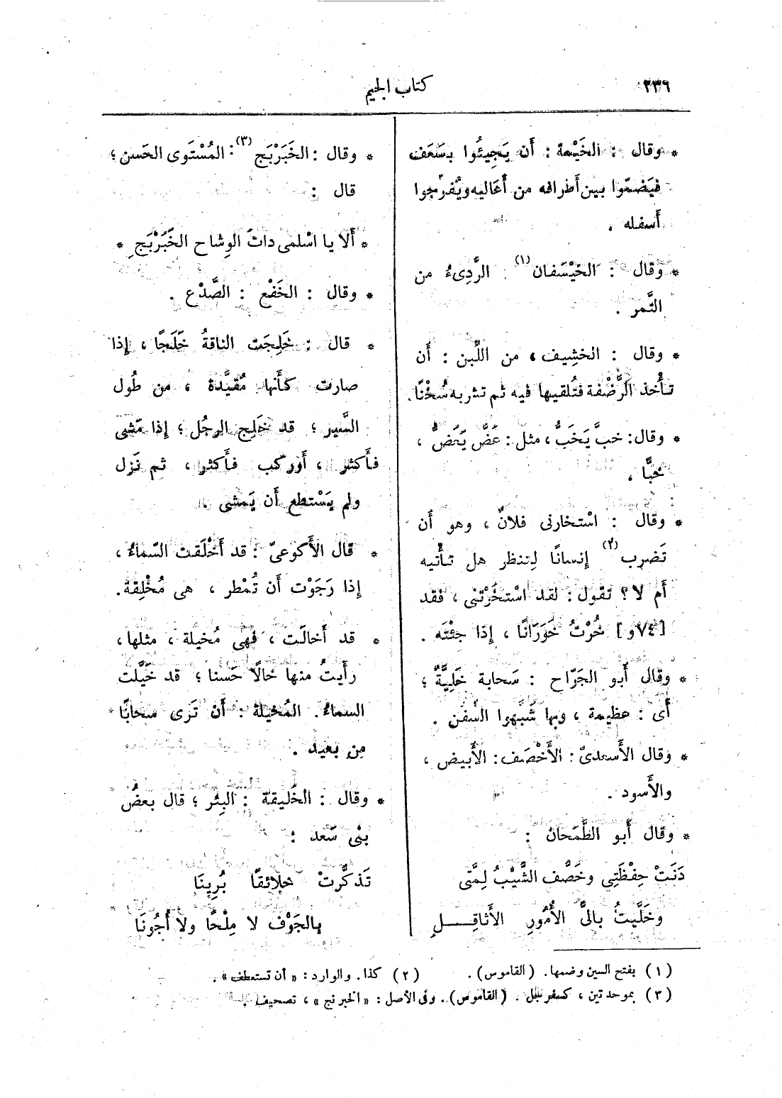 وقال: استخارني فلان، وهو أن تضرب إنساناً لتنظر هل تأتيه أم لا؟ تقول: لقد استخرتن، فقد خُرتُ خوراناً، إذا جئته.