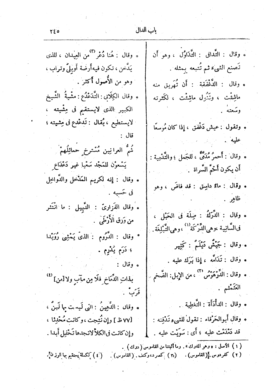 وقال: ماءٌ داسق: قد فاض، وهو ظاهر.