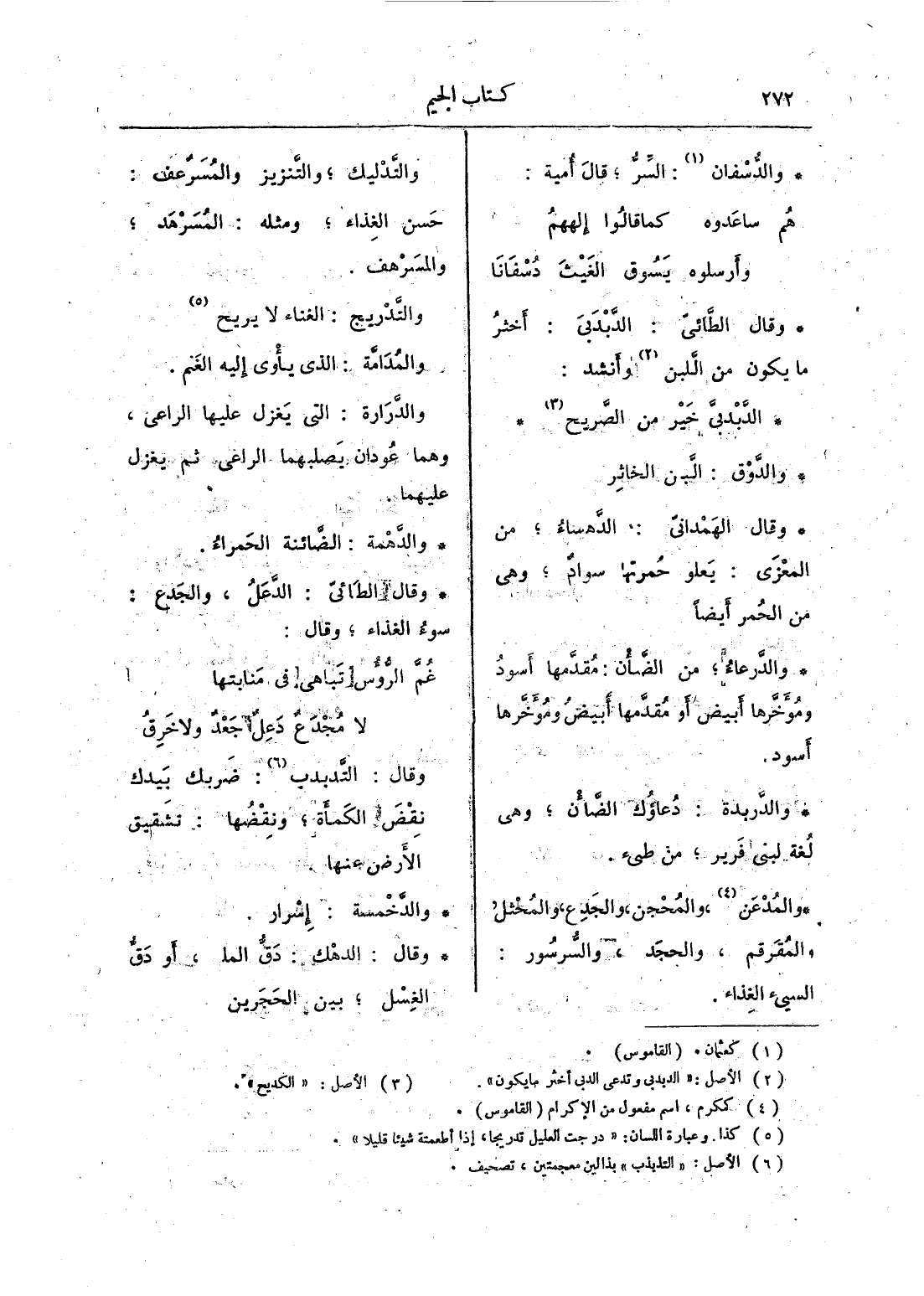 والمُدعن؛ والمحجن، والجدع، والمحثل والمقرقم، والحجد، والسرسور: السيئ الغذاء.