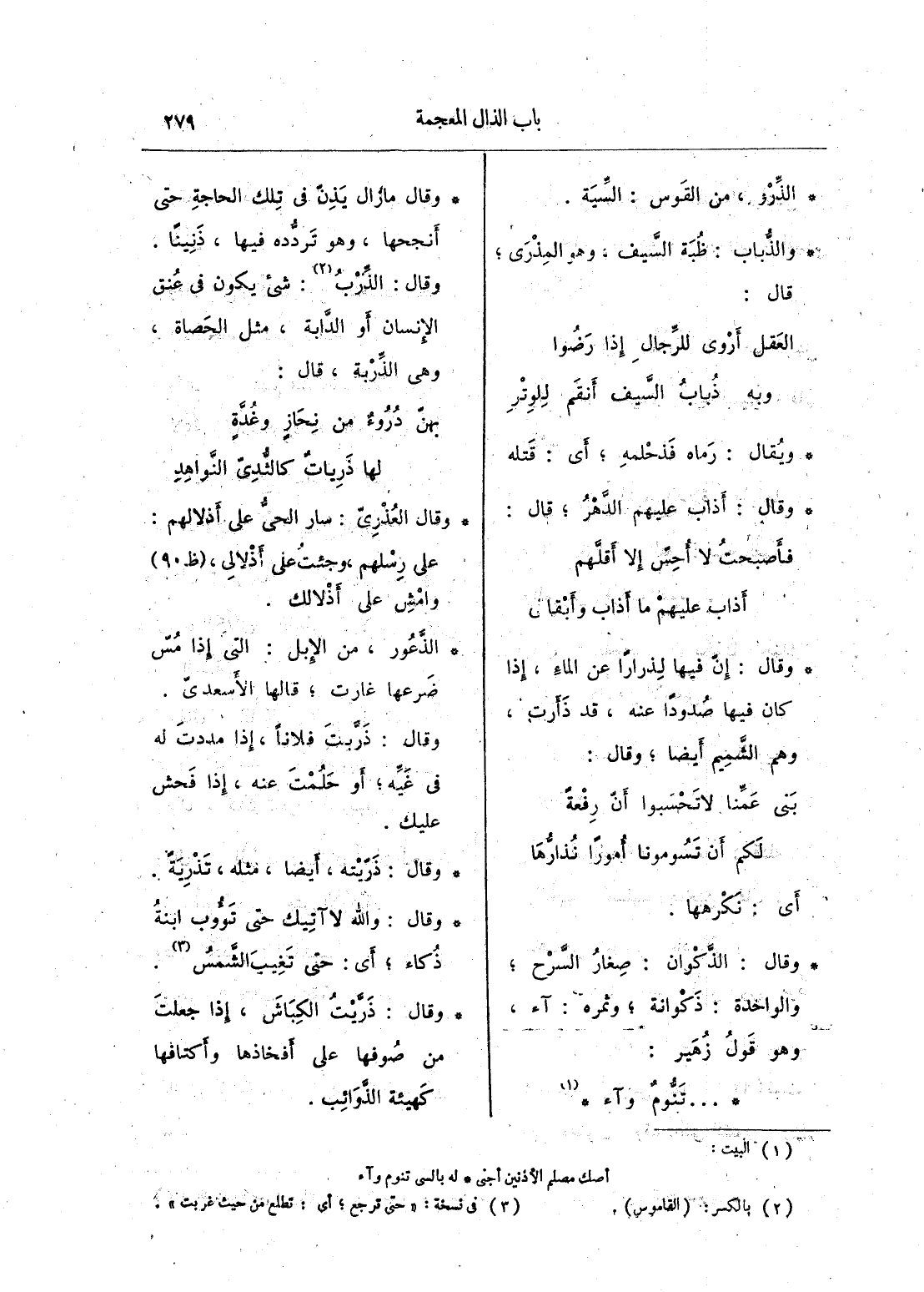 ويقال: رماه فذحلمه؛ أي: قتله وقال: أذاب عليهم الدهر؛ قال: