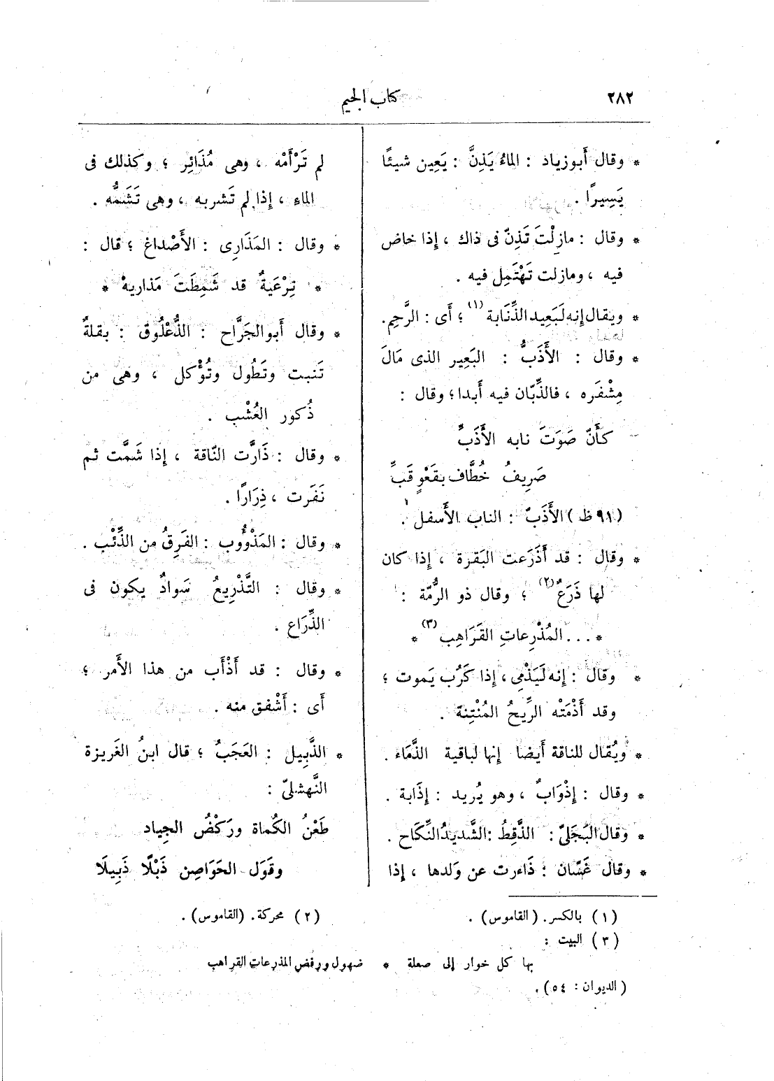 وقال غسان: ذاءرت عن ولدها، إذا لم ترأمه، وهي مذائر؛ كذلك في الماء، إذا لم تشربه، وهي تشمه.