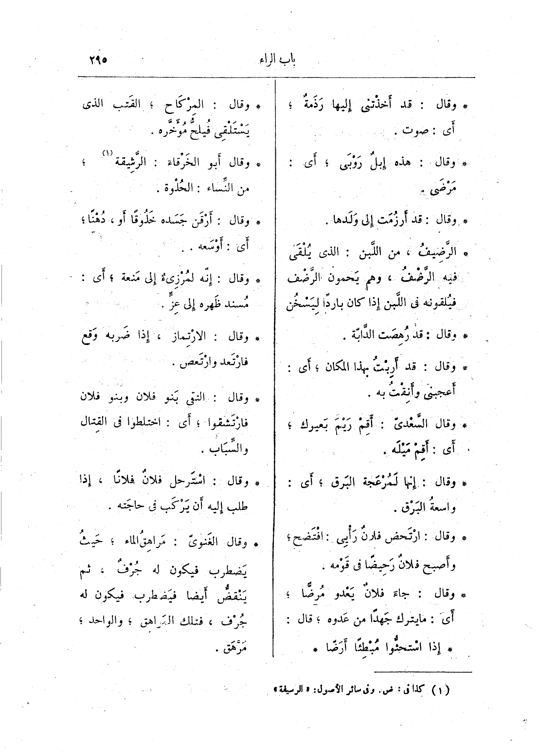 وقال أبو الخرقاء: الرشيقة؛ من النساء: الحلوة.