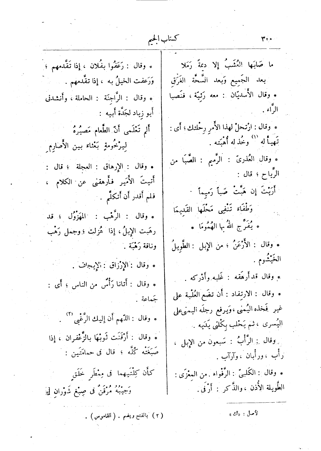 وقال: الأرعن؛ من الإبل: الطويل الخيشوم.