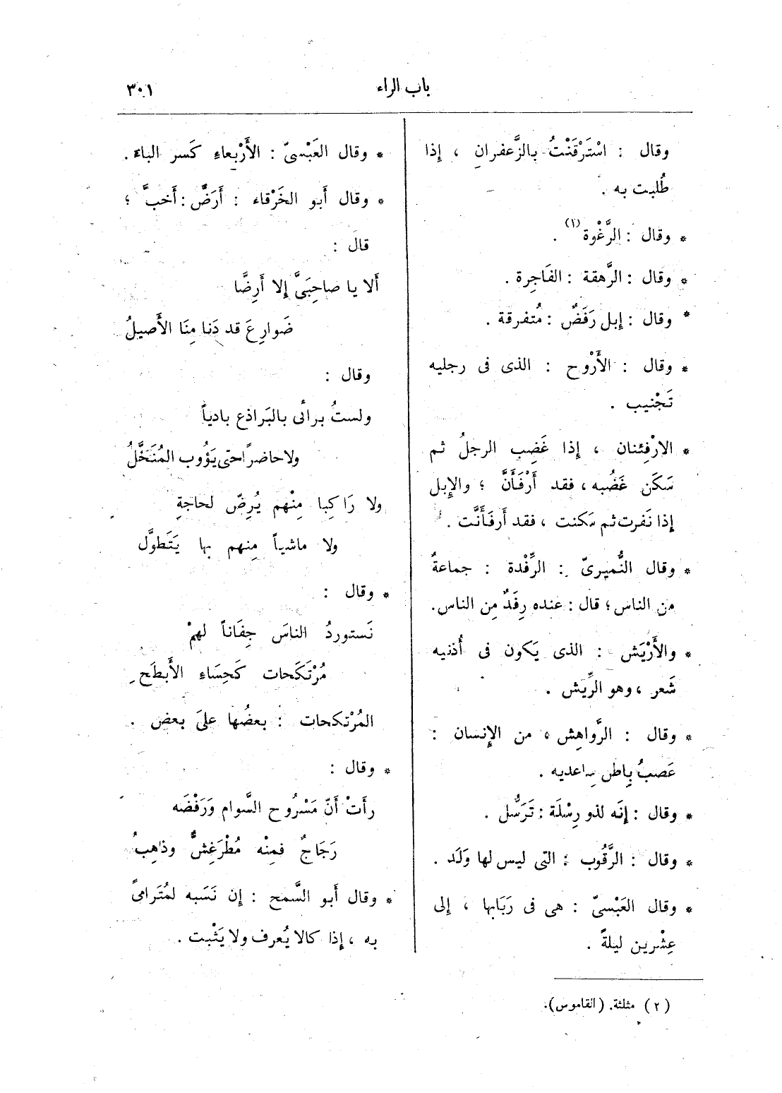 الارفئنان، إذا غضب الرجل ثم سكن غضبه، فقد أرفأن؛ والإبل إذا نفرت ثم سكنت، فقد أرفأنت.
