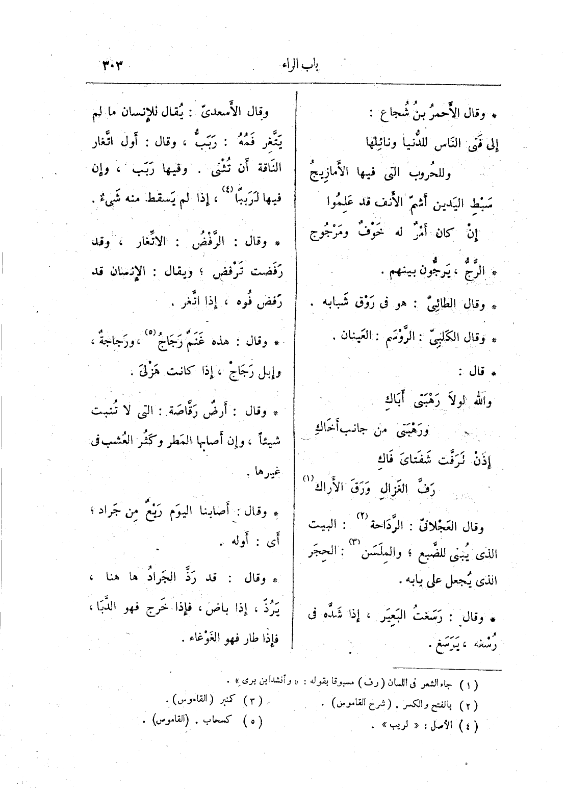 وقال: هذه غنم رجاج، ورجاجة، وإبل رجاج، إذا كانت هزلى.