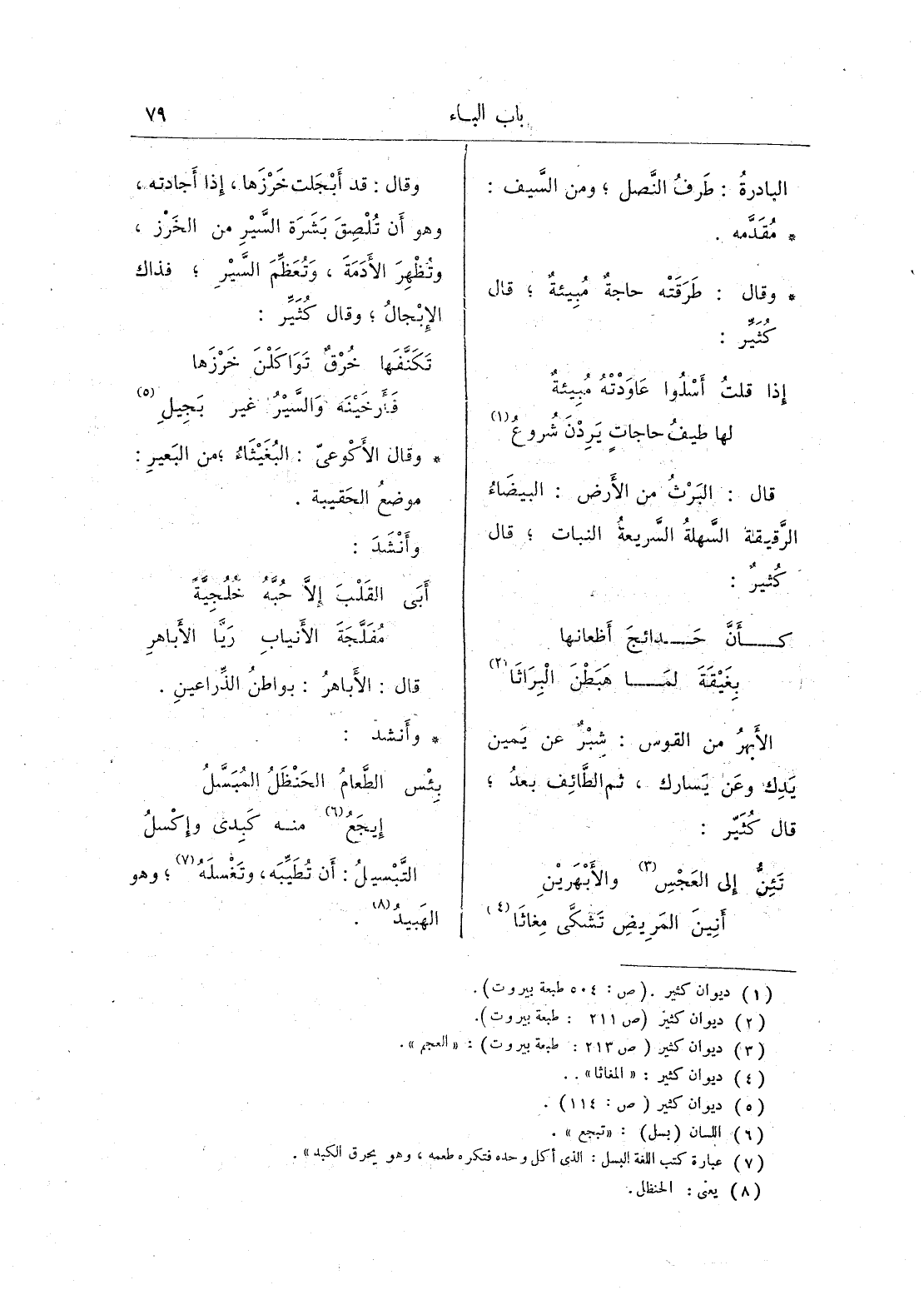 أَبَى القَلْبَ إلاَّ حُبَّهُ خُلُجِيَّةً ... مُفَلَّجَةَ الأَنيابِ رَيَّا الأَباهرِ
