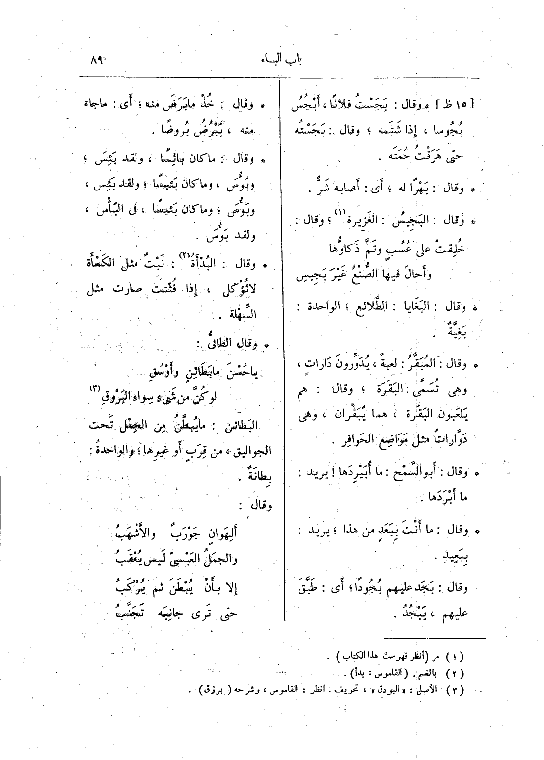 يا حُسْنَ ما بَطَائِنٍ وأَوْسُقِ ... لو كُنَّ من شَيءٍ سِواءِ البَرْوقِ