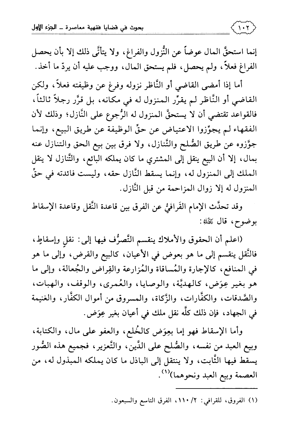 والراجح في كلا المذهبين أنه لا يجوز بيع هذا الحق، ولكن ذكر البهوتي رحمه الله من الحنابلة أن عدم الجواز إنما هو في البيع، ولكن يجوز الاعتياض عنه بطريق التنازل والصلح.