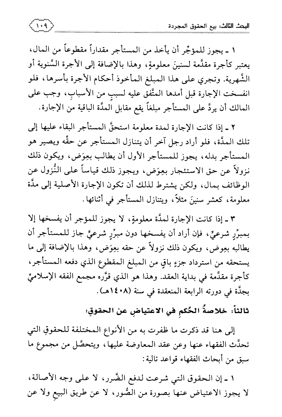 ولما ثبت عن الفقهاء أنهم إنما جوزوا الاعتياض عن حق الوظيفة على وجه النزول والإسقاط، لا على وجه البيع والنقل، وكما تقدم عن شرح منتهى الإرادات للبهوتي، فلابد أن يلاحظ الفرق بين البيع والإسقاط، وذلك بما قلنا من أن النازل يستحق العوض بمجرد نزوله، ولا ينتقل به الحق إلى المنزول له والله سبحانه أعلم. ومن هذا النوع ما راج في كثير من البلدان من بيع خلو الدور والحوانيت. والخلو (1) عبارة عن حق القرار في دار أو حانوت، فربما يؤجر صاحب البناء بناءه لمدة طويلة، فيأخذ من المستأجر مبلغا مقطوعا عند عقد الإجارة زيادة على أجرته الشهرية أو السنوية، وبدفع هذا المبلغ يستحق المستأجر أن يبقى على إجارته مدة طويلة. ثم ربما ينقل المستأجر حقه هذا إلى غيره، فيأخذ منه مبلغا يستحق به عقد الإجارة مع صاحب البناء، وإذا أراد المالك استرداد بنائه من المستأجر لزمه أن يؤدي إليه مبلغا يتراضى عليه الطرفان. وإن هذه المبالغ كلها تسمى "خلو" أو "جلسة" في شتى البلاد العربية، و"بكرى" و"سلامي" في ديارنا. وأصل الحكم في هذا الخلو عدم الجواز، لكونه رشوة أو عوضا عن حق مجرد. ولكن أفتى بعض الفقهاء بجوازه. وأول من عرف بتجويز الخلو العلامة ناصر الدين اللقاني رحمه الله تعالى، من علماء المالكية في القرن العاشر، ثم تبعه جماعة. قال ابن عابدين رحمه الله: