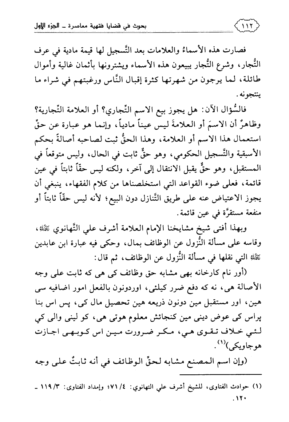 فيأخذ منه قدرا من المال يعمر به المسجد، ويجعل عليه خمسة عشر مثلا في كل شهر. والحاصل أن منفعة الحانوت المذكورة شركة بين صاحب الخلو والوقف بحسب ما يتفق عليه صاحب الخلو والناظر على وجه المصلحة، كما يؤخذ مما أفتى به الناصر كما أفاده (عج) .