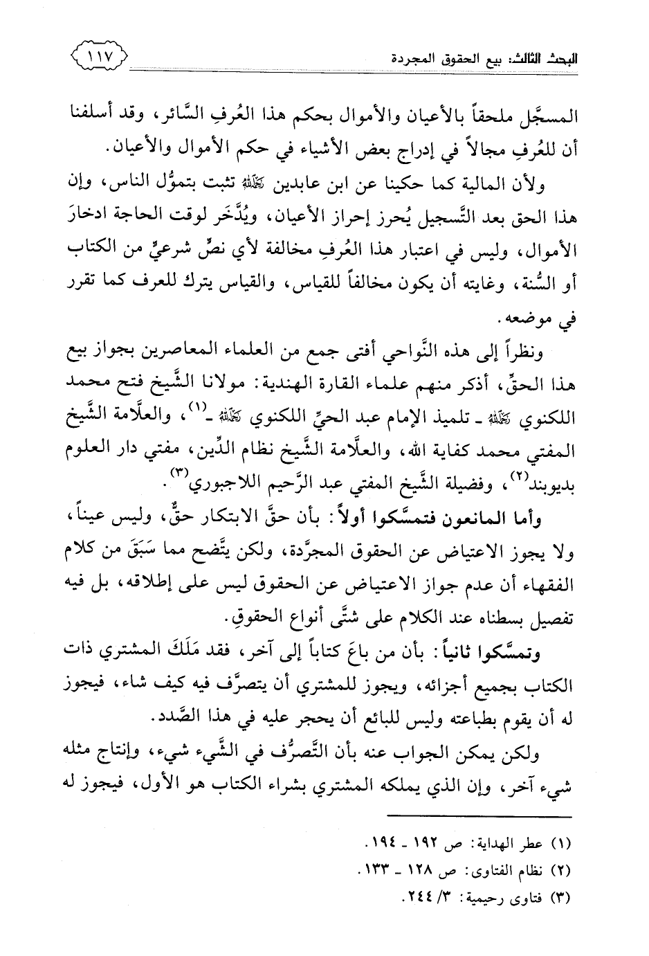 وبعد هذا التنقيح نرجع إلى الحقوق المعاصرة التي شاع تداولها اليوم، والتي نقصد بهذا البحث تحقيق حكمها، والله سبحانه هو الموفق للصواب.