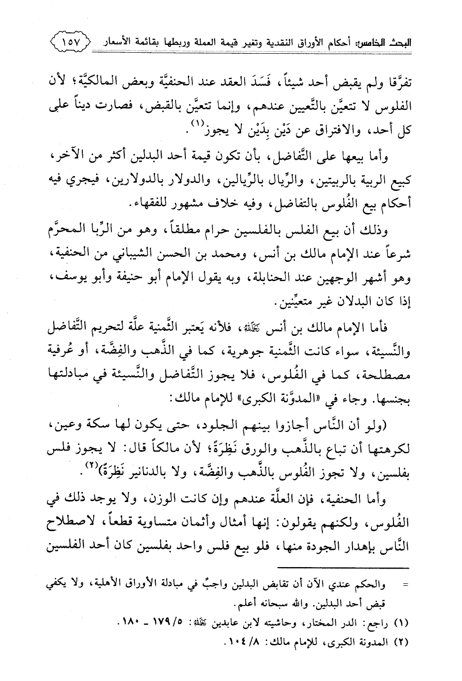 وخلاصة قوله: أن أوراق العملة لها جهتان: الأولى: أنها يتعامل بها في البيوع والإجارات، وسائر العقود المالية كالسكك والأثمان سواء بسواء، بل وقد ألزمت الدول جميع الناس لقبولها في اقتضاء الديون والحقوق، فلا يسع لدائن في القانون اليوم أن يمتنع من قبولها في اقتضاء دينه. ومن هذه الجهة صارت هذه الأوراق أثمانا عرفية.