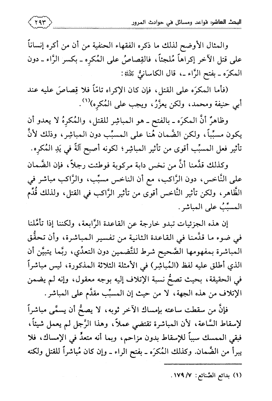 وإن هذا الحديث من أصرح الأدلة على أن من سبب ضررا لآخر، فإنه ضامن لما أصابه، وكذلك أخرج الدارقطني في سننه عن النعمان بن بشير رضي الله عنهما، قال: قال رسول الله صلى الله عليه وسلم: ((من أوقف دابة في سبيل من سبل المسلمين، أو في سوق من أسواقهم، فأوطأت بيد أو رجل، فهو ضامن)) (1) . وهذا الحديث، وإن كان في إسناده كلام، لضعف سري بين إسماعيل الهمذاني الكوفي (2) ولكن مضمونه مما اتفق عليه جمهور الفقهاء قديما وحديثا.