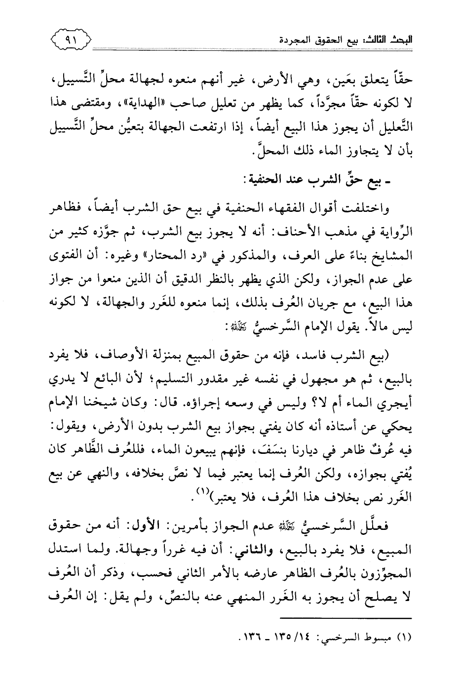 قال مالك: هو جائز. قلت: فإن بعت حظي بعت أصله من الشرب، وإنما لي فيه يوم من اثني عشر يوما، أيجوز في قول مالك؟ قال: نعم، قلت: فإن لم أبع أصله، ولكن جعلت أبيع منه السقي، إذا جاء يومي بعت ما صار لي من الماء ممن يسقى به، أيجوز هذا في قول مالك، قال: نعم " (3) .