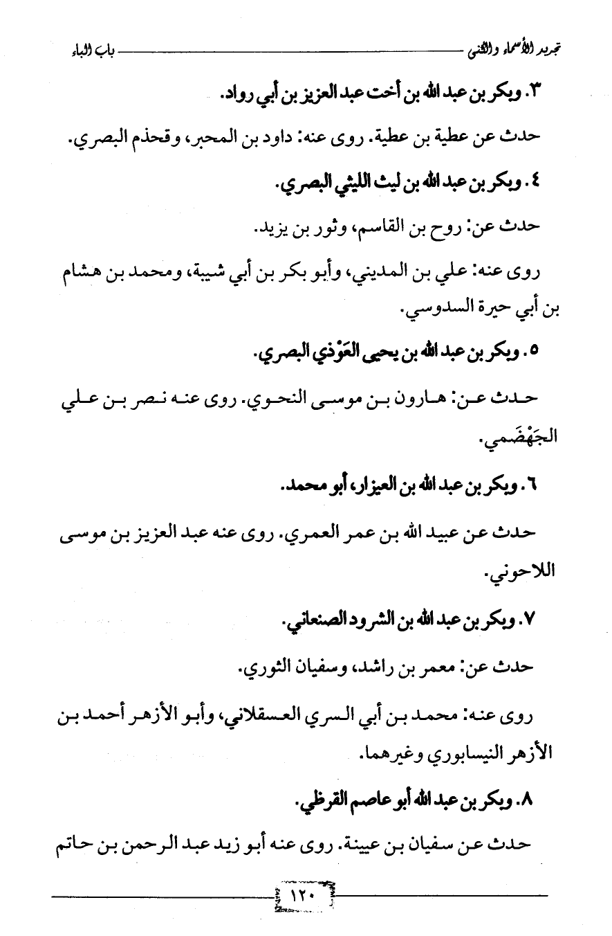 6 - وبكر بن عبد الله بن العيزار، أبو محمد.