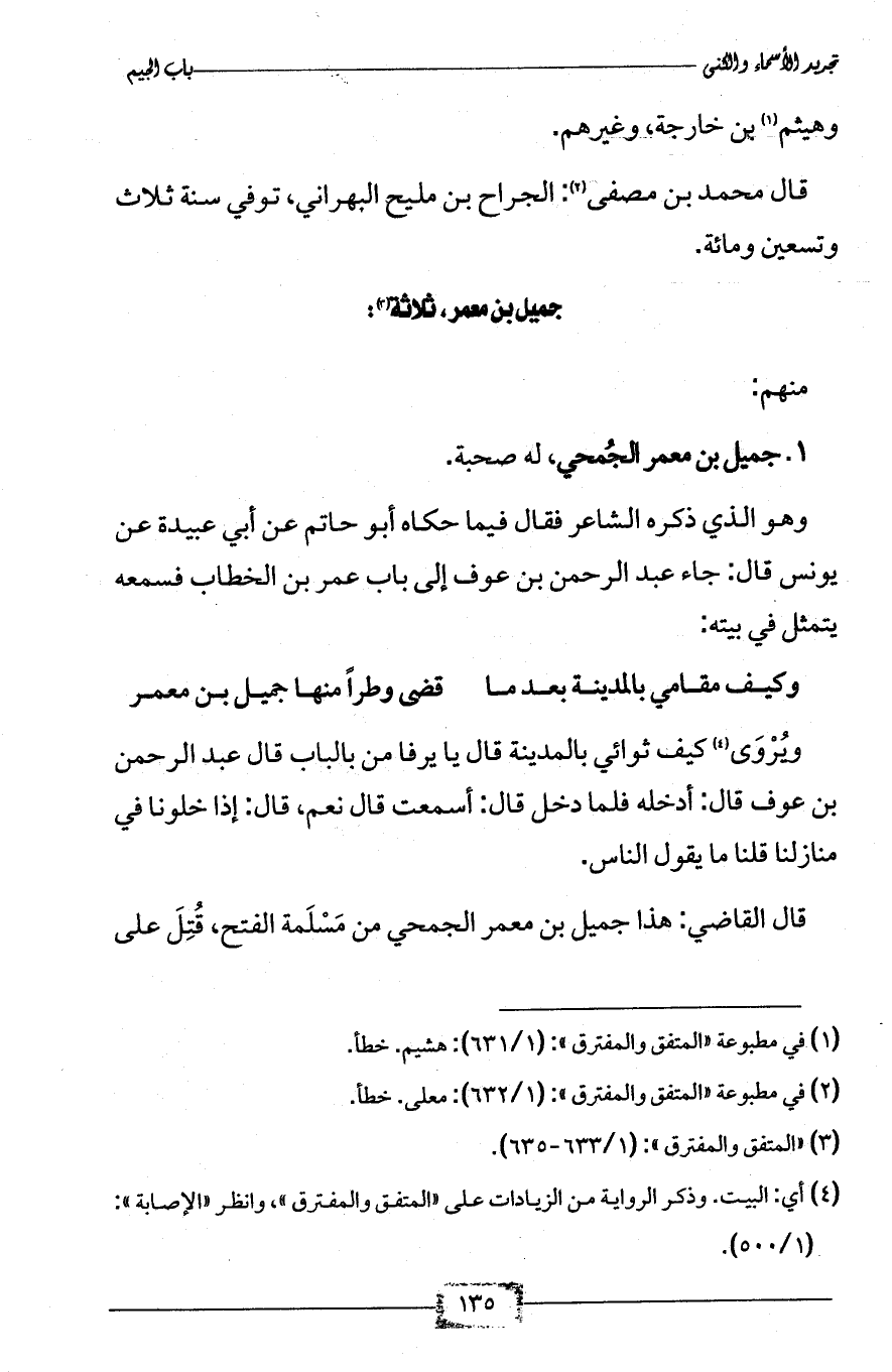قال القاضي: هذا جميل بن معمر الجمحي من مَسْلَمة الفتح، قُتِلَ على