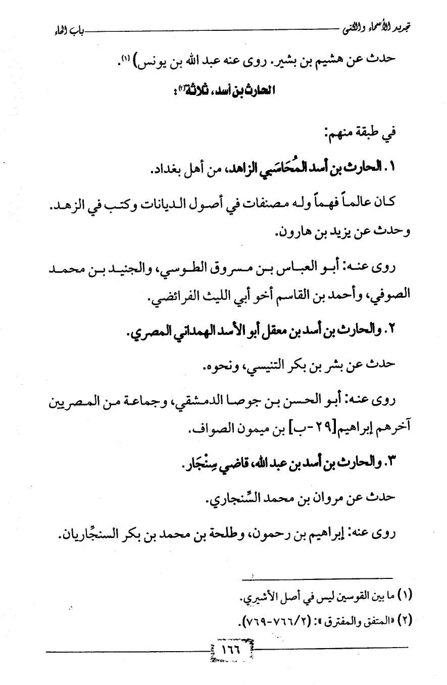 1 - الحارث بن أسد المُحَاسَبي الزاهد، من أهل بغداد.