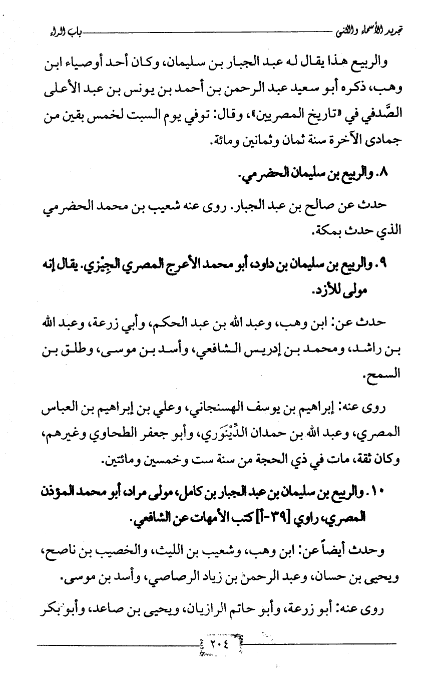 10 - والربيع بن سليمان بن عبد الجبار بن كامل، مولى مراد، أبو محمد المؤذن المصري، راوي [39 - أ] كتب الأمهات عن الشافعي.