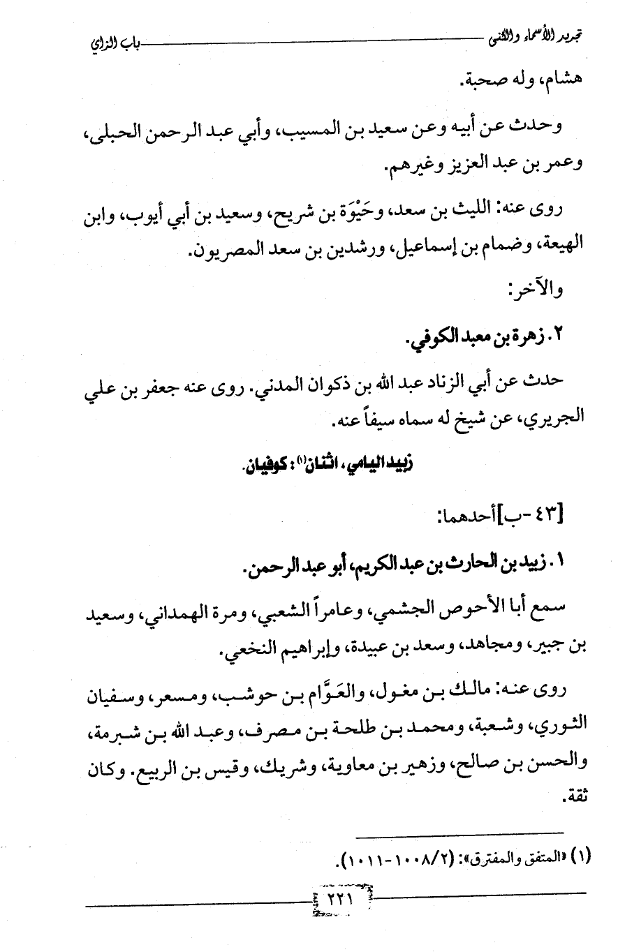 1 - زبيد بن الحارث بن عبد الكريم، أبو عبد الرحمن.