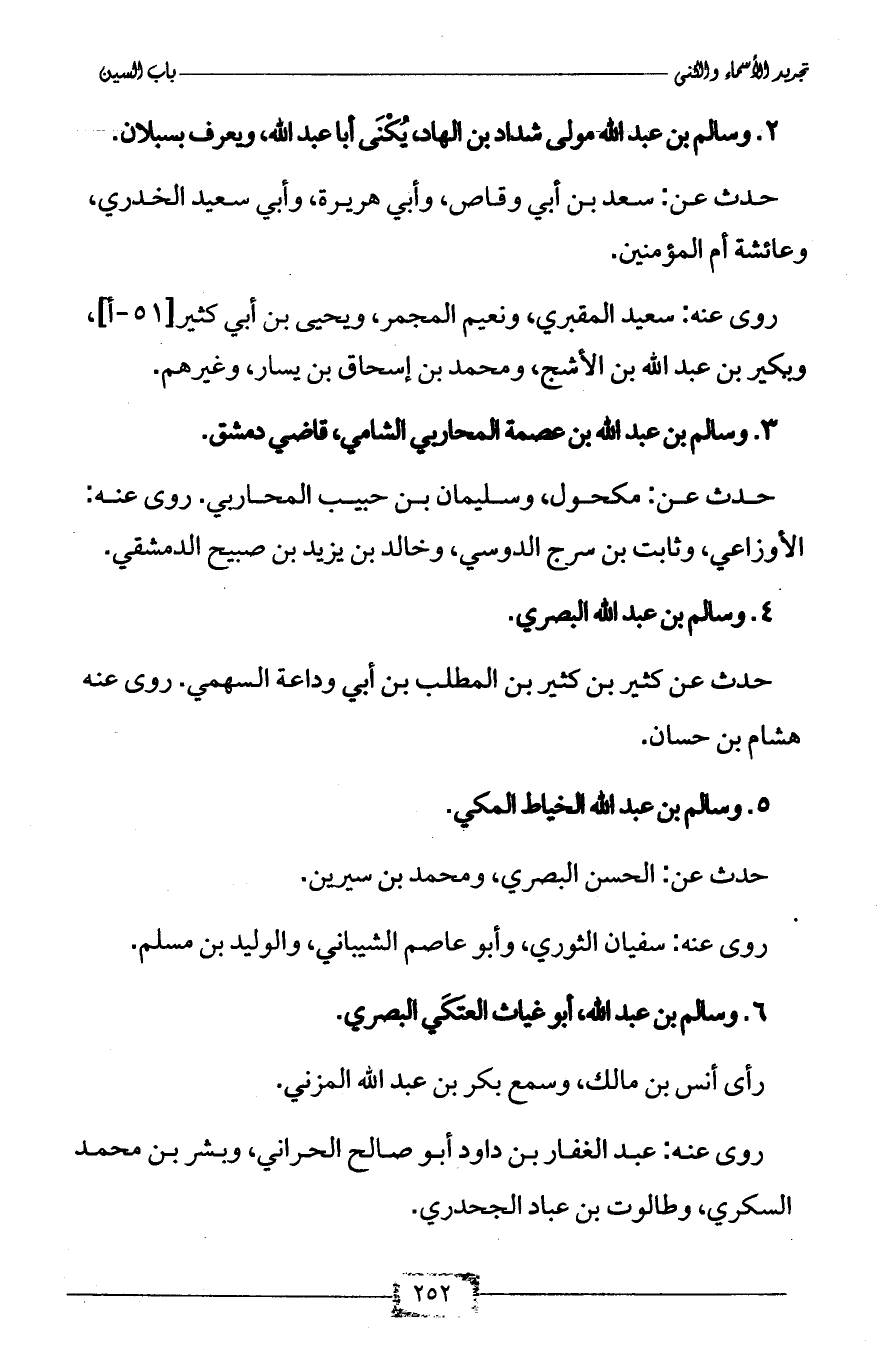 2 - وسالم بن عبد الله مولى شداد بن الهاد، يُكْنَى أبا عبد الله، ويعرف بسبلان.