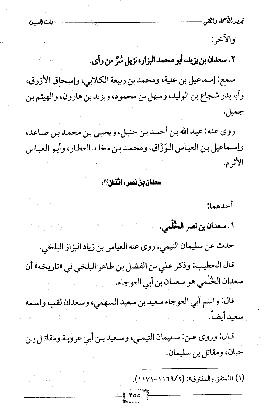 2 - سعدان بن يزيد، أبو محمد البزار، نزيل سُرَّ من رأى.
