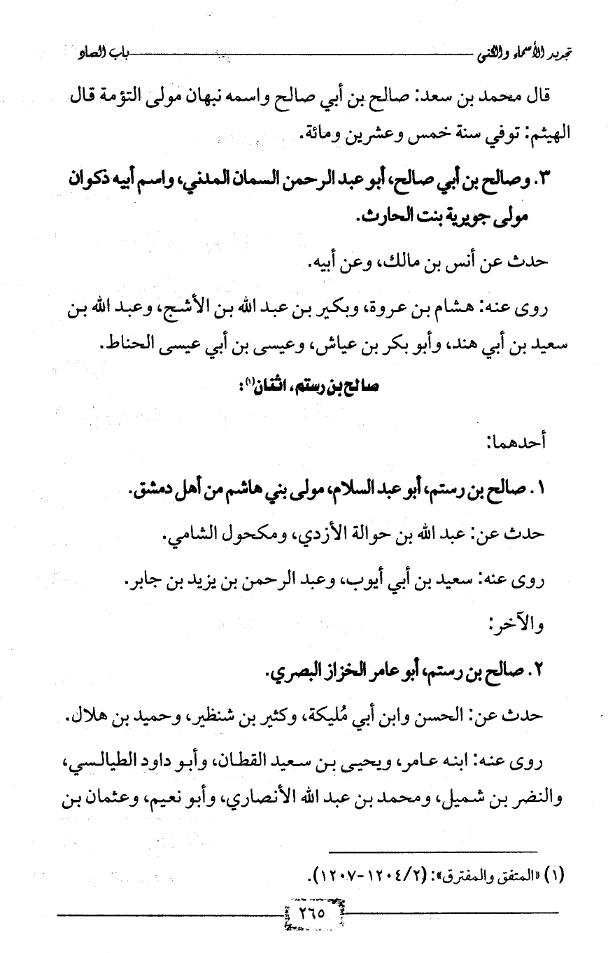 1 - صالح بن رستم، أبو عبد السلام، مولى بني هاشم من أهل دمشق.