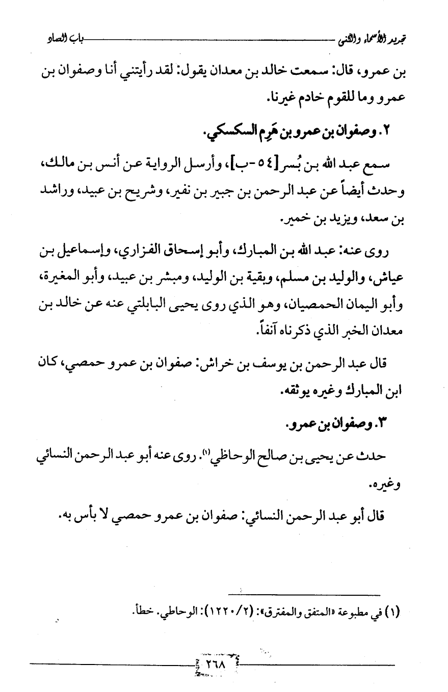 (¬1) في مطبوعة «المتفق والمفترق»: (2/ 1220): الوحاطي. خطأ.