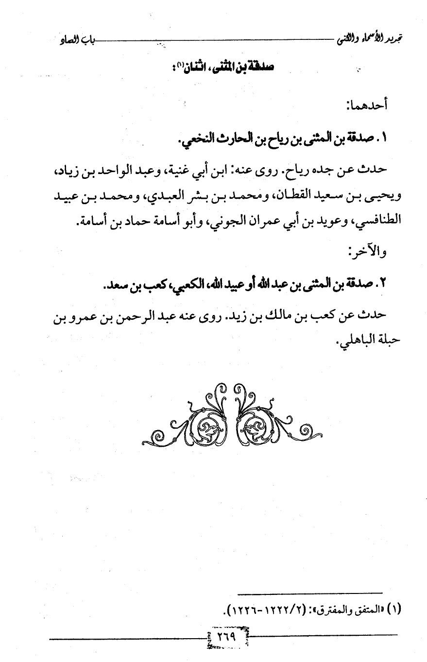 2 - صدقة بن المثنى بن عبد الله أو عبيد الله، الكعبي، كعب بن سعد.