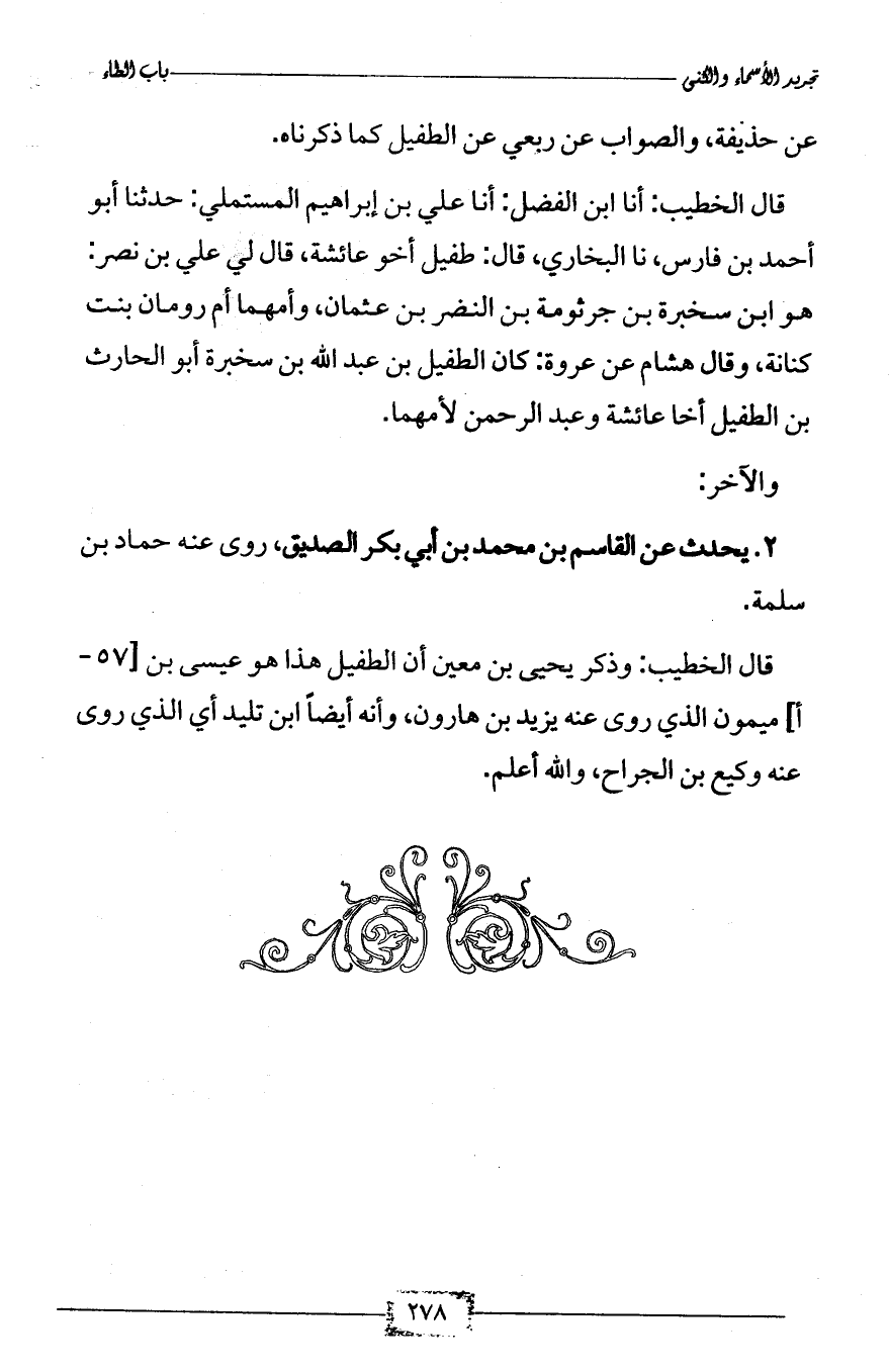 قال الخطيب: وذكر يحيى بن معين أن الطفيل هذا هو عيسى بن [57 - أ] ميمون الذي روى عنه يزيد بن هارون، وأنه أيضاً ابن تليد أي الذي روى عنه وكيع بن الجراح، والله أعلم.