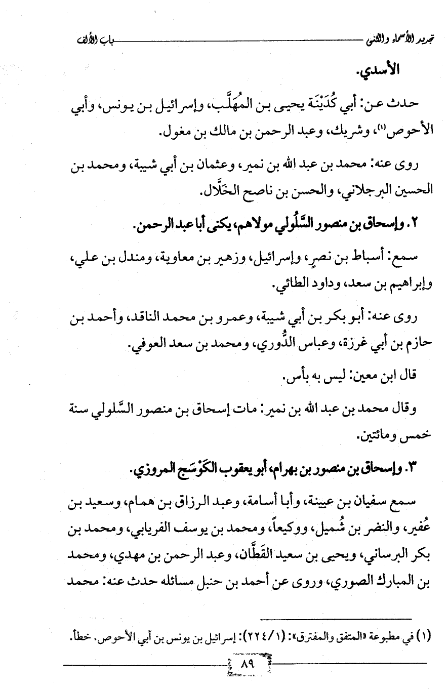(¬1) في مطبوعة «المتفق والمفترق»: (1/ 224): إسرائيل بن يونس بن أبي الأحوص. خطأ.