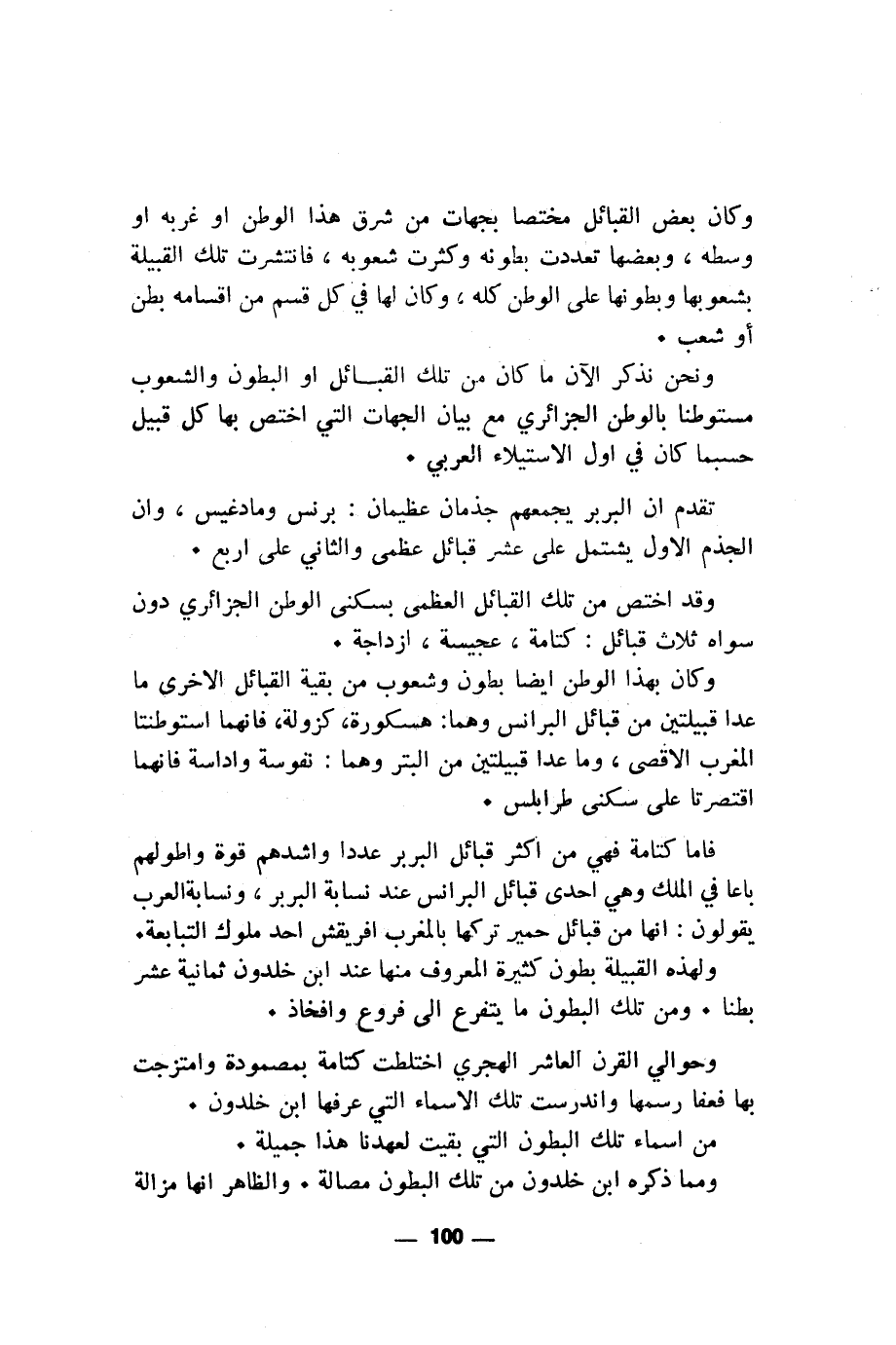 ونحن نذكر الآن ما كان من تلك القبائل او البطون والشعوب مستوطنا بالوطن الجزائري مع بيان الجهات التي اختص بها كل قبيل حسبما كان في اول الاستيلاء العربي.