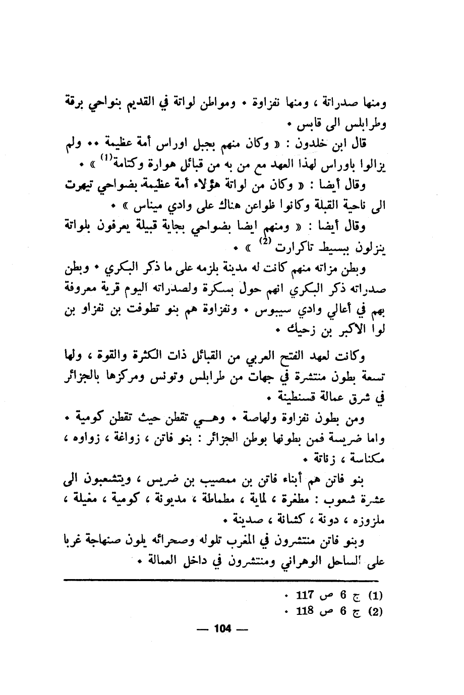 وقال أيضا: " ومنهم ايضا بضواحي بجاية قبيلة يعرفون بلواتة ينز لون ببسيط تاكرارت (¬2) ".