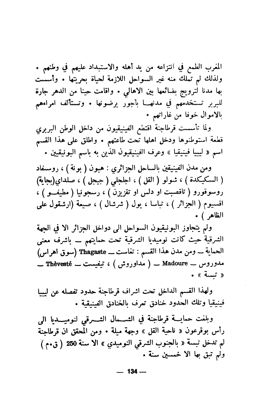 ولم يتجاوز البونيقيون السواحل الى دواخل الجزائر الا في الجهة الشرقية حيث كانت نوميديا الشرقية تحت حمايتهم- باشرف معنى الحماية- ومن مدن هذا القسم: تغاست- Thagaste (سوق اهراس) مدوروس- Madoure - (مداوروش)، تيفيست- Thèvesté -" تبسة".